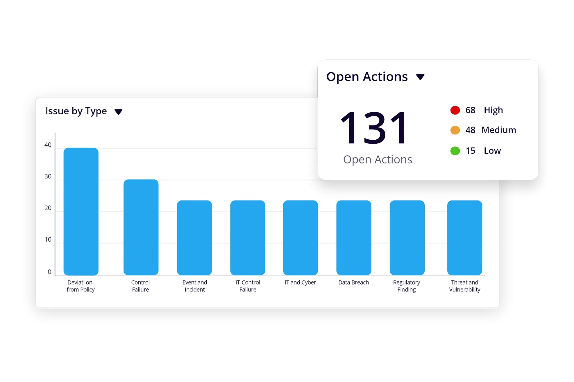 Document, manage, and monitor all engagement findings. Summarize the findings, as well as their type, root cause, and owner. Leverage AI/ML to quickly identify issues based on relation and recommend issue classification. Manage, assign, and track action plans to closure.
